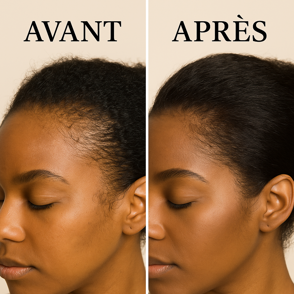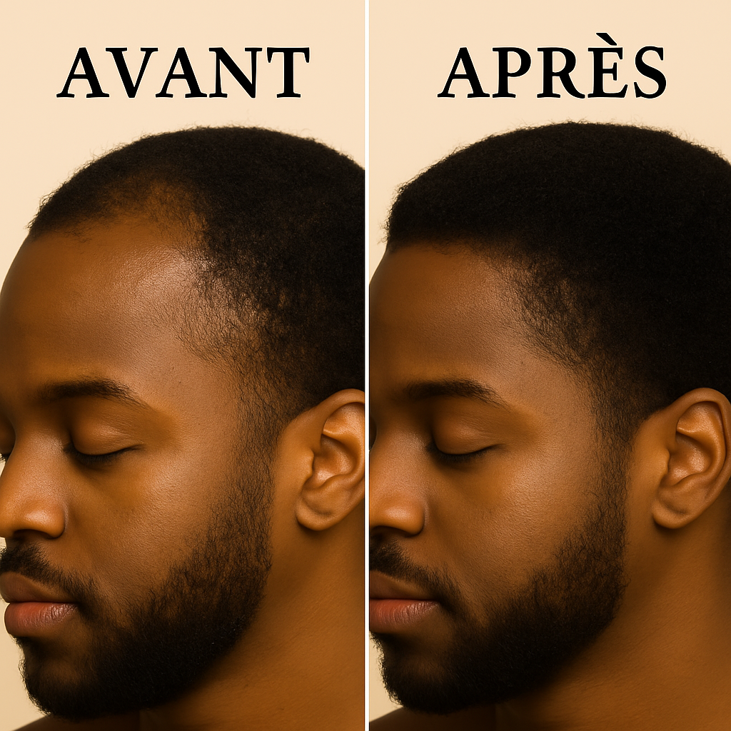 Jour après jour, les zones clairsemées retrouvent du volume, les tempes dégarnies se remplissent, et la chevelure gagne en force et en densité.